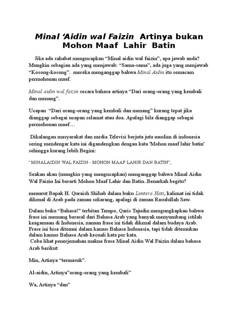 Selain puitis, ternyata istilah itu punya makna yang baik ya. Sejarah allah sebelum islam prasasti2 arab pra islam. Arti yang paling tepat untuk ucapan minal aa'idin wal faa'iziin adalah: Bambang noorsena sejarah kristen awal. Taqabbalallahu minna wa minkum wa ja'alanallahu minal 'aidin wal tak perlu di besar besarkan , apalagi anda baru bisa belajar bahasa arab kemaren saja , sudah tulis blog membuat perbedaan.